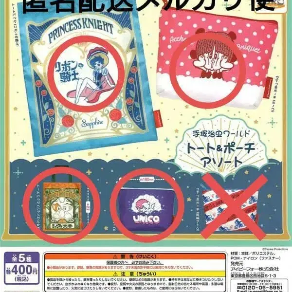 데즈카 오사무 가챠 토트백 파우치 4개 세트