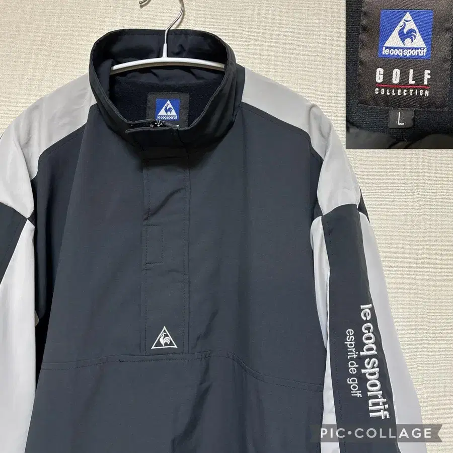 골프용 L 사이즈 자켓, 블랙과 그레이의 배색이 특징입니다.