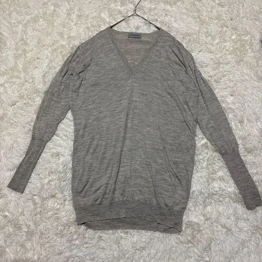 새상품급 JOHN SMEDLEY 영국제 V넥 코튼 니트 그레이