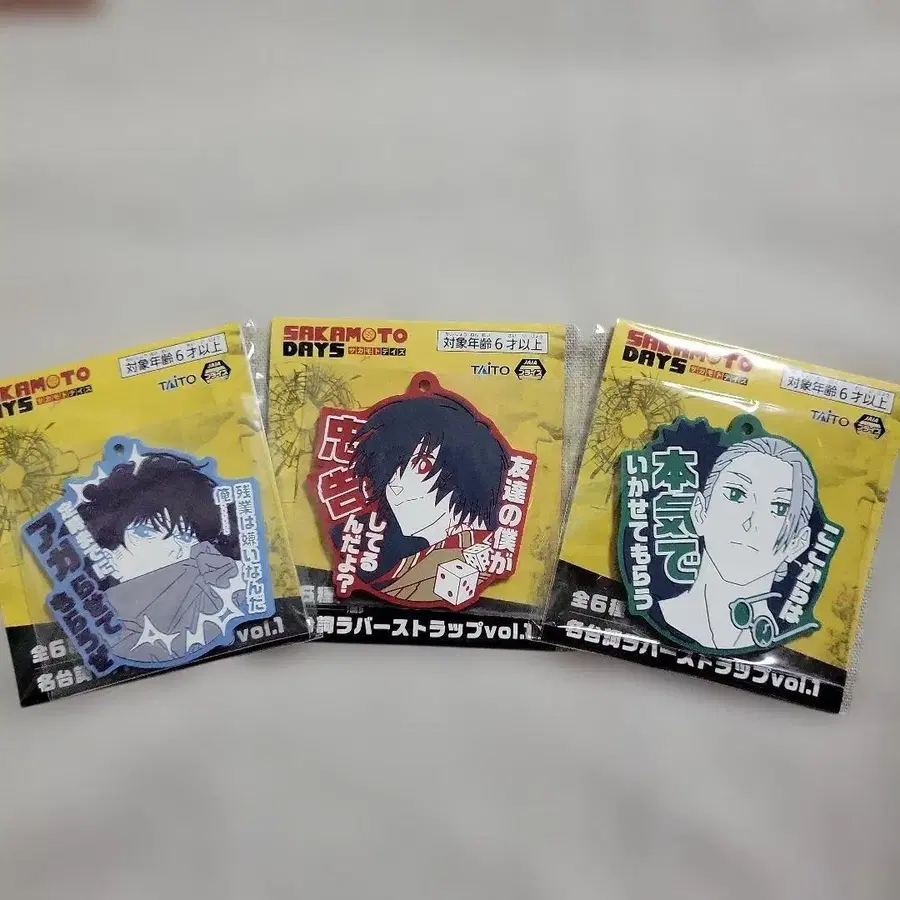 SAKAMOTODAYS 사카모토 데이즈 명대사 러버 스트랩 ✳ 3개 세트입니다. 낱개 판매는 생각하고 있지 않습니다. ✳ 새상품, 미사용 상품, 자택 보관 ✳ 뽑기 게임으로 얻은 것이므로, 예민하신 분은 구매를 삼가해 주십시오. 봐주셔서 감사합니다.