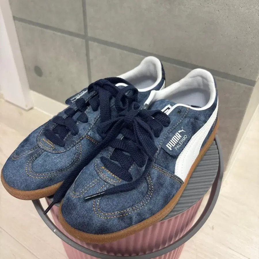 데님 소재의 PUMA PALERMO 스니커즈, 화이트 로고와 고무 밑창이 특징. - 브랜드: PUMA - 모델명: PALERMO - 색상: 데님/화이트 - 밑창 소재: 고무 - 디자인 특징: 데님 소재 - 신발끈 색상: 네이비 1~2회만 사용하여 매우 깨끗합니다! 방문해 주셔서 감사합니다. 색상 - 네이비 계열
