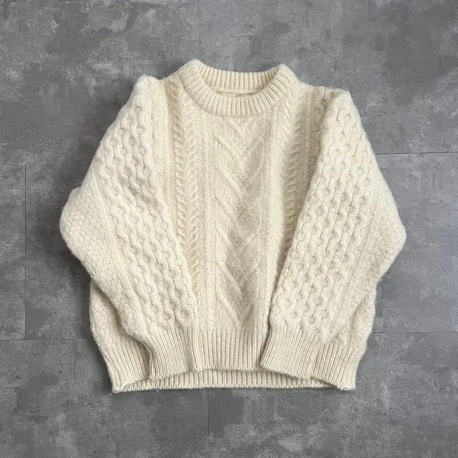 빈티지 아일랜드 아이보리 케이블 니트 피셔맨