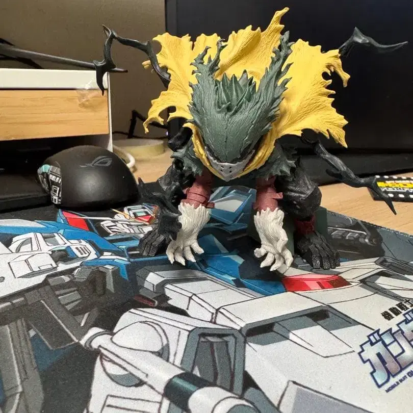 공격적인 포즈로 서 있는, 그린과 옐로우 컬러의 배색 피규어, 높이 약 15cm. - 캐릭터: 나의 히어로 아카데미아 캐릭터 - 포즈: 공격적인 포즈 - 색상: 그린과 옐로우 컬러의 배색 - 소재: 플라스틱제 - 사이즈: 높이 약 15cm 방문해 주셔서 감사합니다.