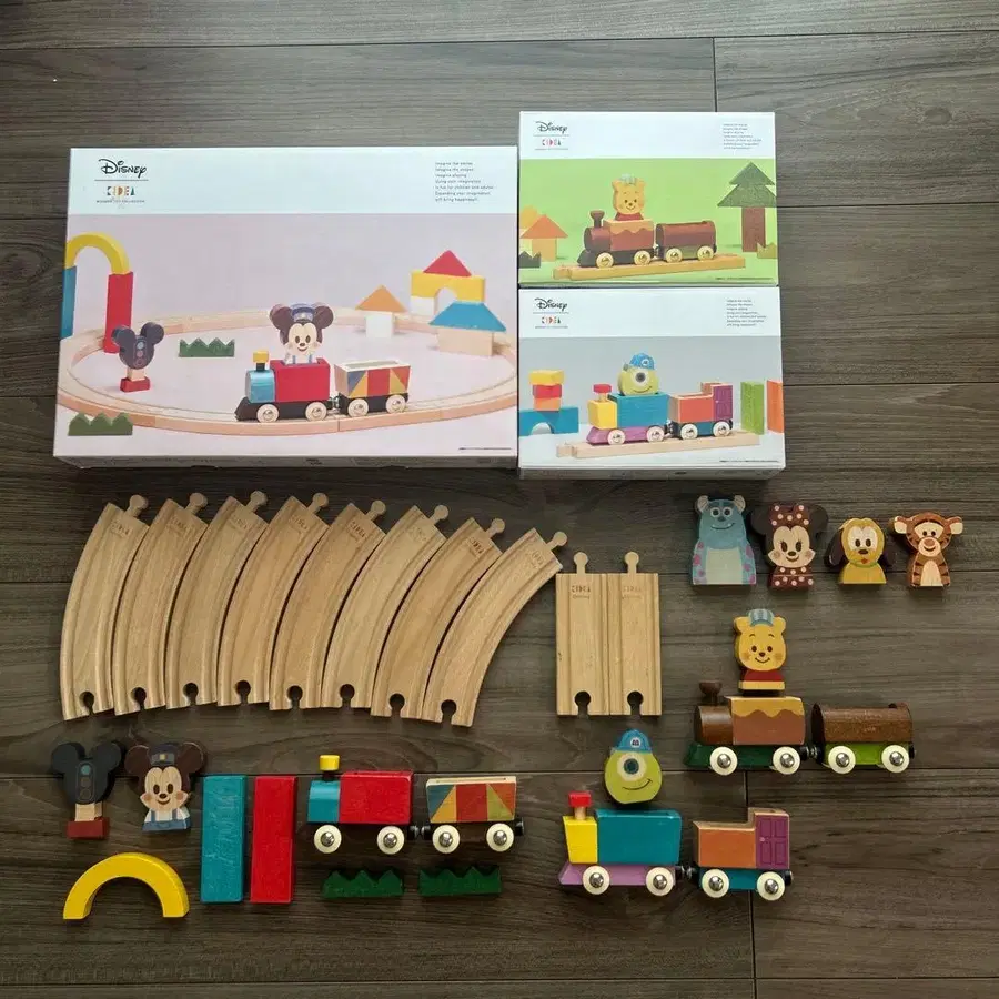 JR 나고야 타카시마야 DADWAY에서 구매한 상품입니다. KIDEA 키디아 레일 시리즈! 기관사 ver. 미키마우스! 곰돌이 푸, 몬스터즈 잉크 레일 시리즈 세트와는 별도로, [샐리] [미니 마우스] [플루토] [티거]도 함께 드립니다. 곰돌이 푸와 몬스터즈 잉크는 현재 출시되지 않는 상품입니다. 모두 정말 귀엽습니다 ^^ 사진 1장의 상품이 전부입니다. 어린이가 가지고 놀던 상품이므로 이해해 주실 수 있는 분만 잘 부탁드립니다. KIDEA 키디아 블록 나무 장난감 레일 기차
