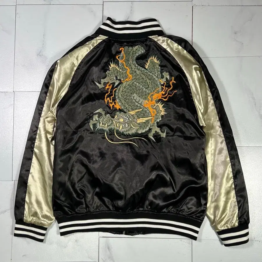 스카잔 블루종 양면 자수 드래곤 바이컬러 구제 의류