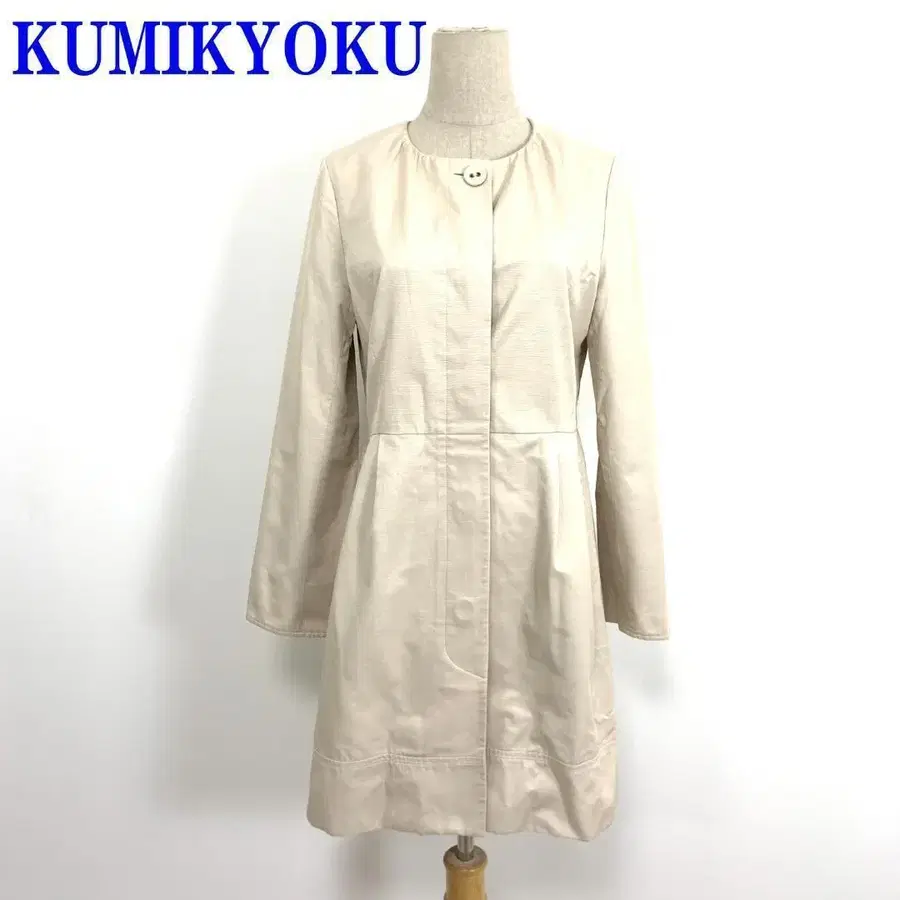 쿠미쿄쿠 노칼라 코트 면 롱 반안감 베이지 3 C1791