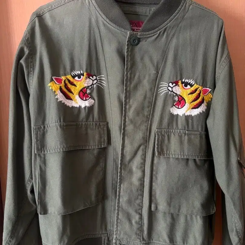 호랑이 자수가 놓인 올리브 색상의 L 사이즈 거의 착용하지 않아 흠집, 얼룩, 보풀, 올풀림 없습니다. 어깨 부분에 신경 쓰이지 않을 정도의 색바램이 있습니다. 옅은 편입니다. 구제 의류로 이해해 주시기 바랍니다. 디자인과 실루엣 모두 상당히 귀엽습니다. 기장은 짧지만, 팔 부분은 넉넉한 편입니다. 어깨 너비 48cm 기장 57cm 가슴 너비 56cm #AVIREX점퍼 #AVIREX블루종 #AVIREX자수블루종