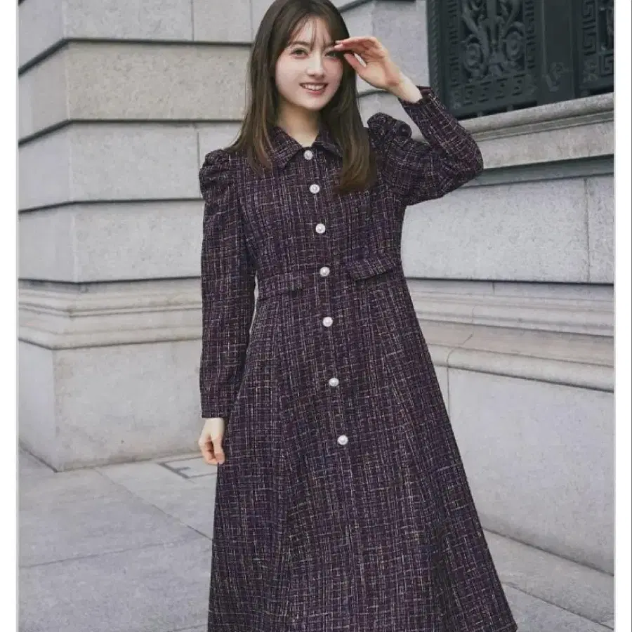 트위드풍 퍼플 계열 원피스, 버튼이 달린 엘레강트한 디자인. 미사용 새상품입니다. 현재 공식 사이트 완판템입니다. - 색상: 퍼플 계열 - 디자인: 버튼 포함, 긴팔, 허리 마크 - 소재: 트위드풍 - 사이즈: 모델 신장 163cm에 맞춘 사이즈감 방문해 주셔서 감사합니다.