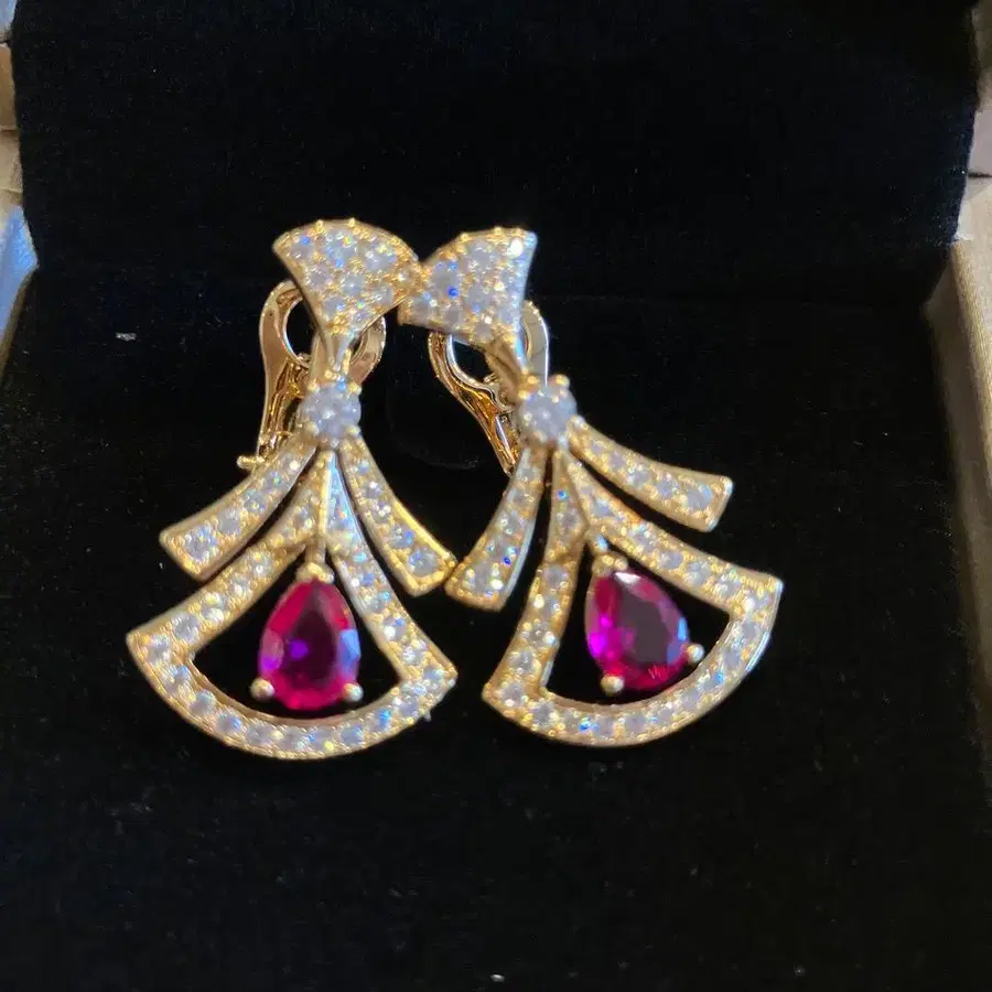 • 롱 귀걸이 크리스탈 스톤 장식 흔들리는 귀걸이 핑크 골드 2way