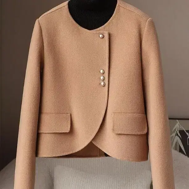 새상품 부드러운 분위기의 캐시미어 혼방 울 자켓 여성용 하프 기장 코트