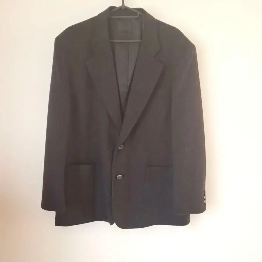 다크 그레이 색상의 순수 캐시미어 테일러드 자켓, 앞면에 포켓 부착.