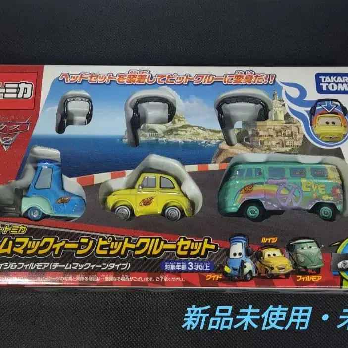 토미카 카즈 팀 맥퀸 피트 크루 세트 귀도 (팀 맥퀸 타입) 루이지 (팀 맥퀸 타입) 필모어 (팀 맥퀸 타입) 박스 있음 (상당히 새상품급) 미사용 새상품 미개봉