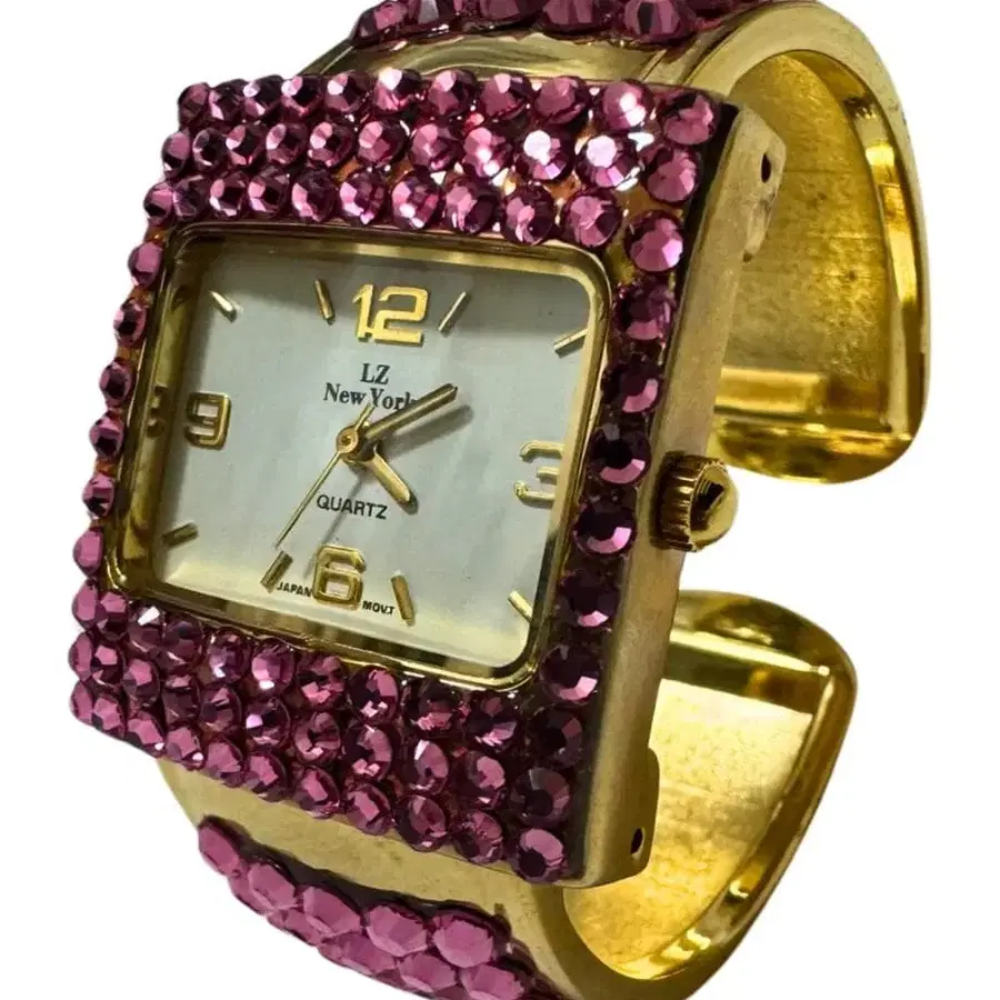 LZ NewYork 스와로브스키 뱅글 손목시계 핑크