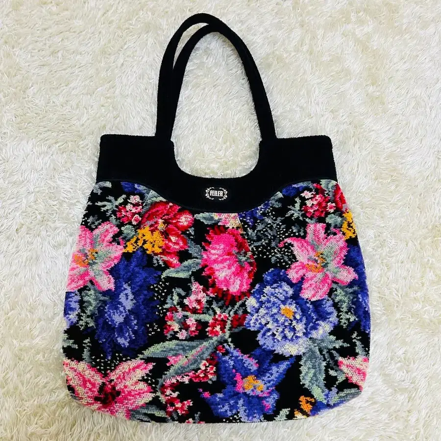 FEILER 꽃무늬 자수 토트백 블랙