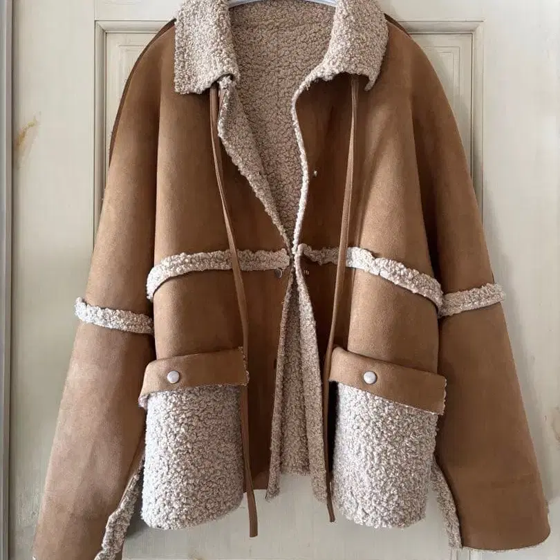 브라운 스웨이드 보아 무스탕 코트