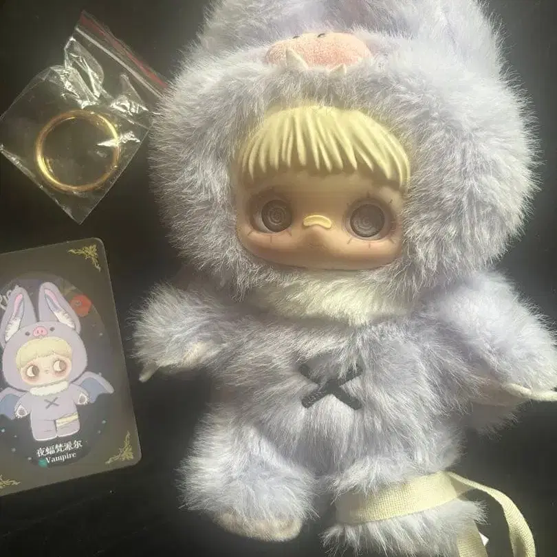 박쥐 코스튬을 입은 연보라색 봉제 인형