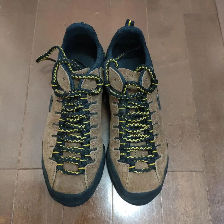 스웨이드와 러버의 조합으로, 등산에 최적인 내구성을 가진 신발. 5회 정도 사용 후, 잠시 자택 보관하고 있었습니다. 사이즈 표기가 보이지 않지만, 평소 24cm~24.5cm 신발을 신는 분에게 딱 맞는 사이즈입니다. 중고품에 이해가 되시는 분의 구매를 부탁드립니다.