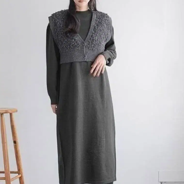 • michell Macaron 니트 베스트 셔츠 도킹 원피스