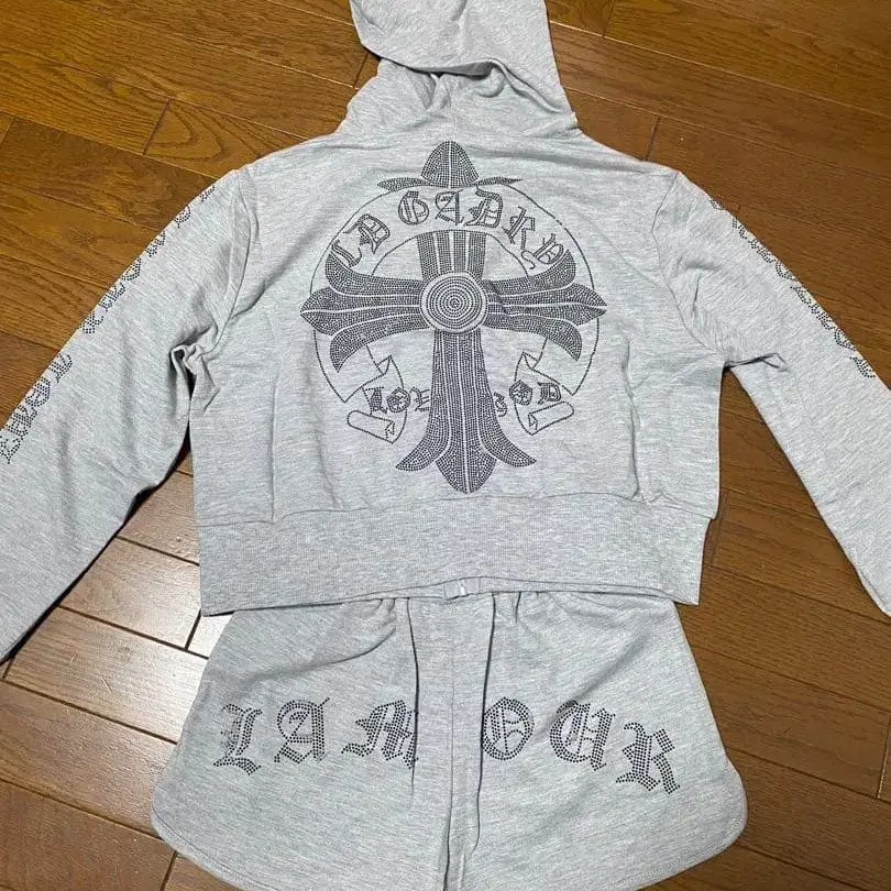 가격 인하! 크로스 모티브 후드티와 숏 팬츠 셋업 그레이 미사용 새상품