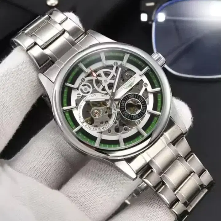 LONGUX 자동 와인딩 손목시계 스켈레톤 실버/그린 약 42mm