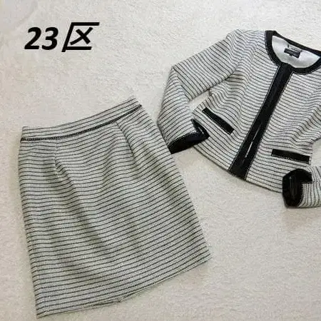 • A2402 23구 스커트 정장 세트 면 트위드 화이트 아이보리 블랙 38