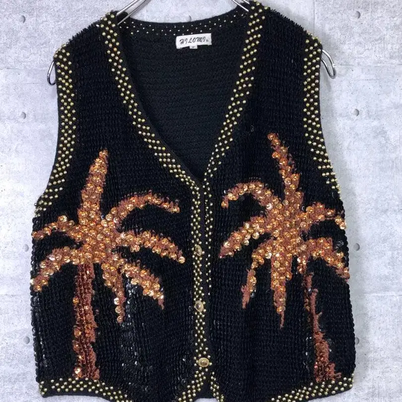레트로 이국적인 구제 의류 야자수 스팽글 비즈 자수 베스트