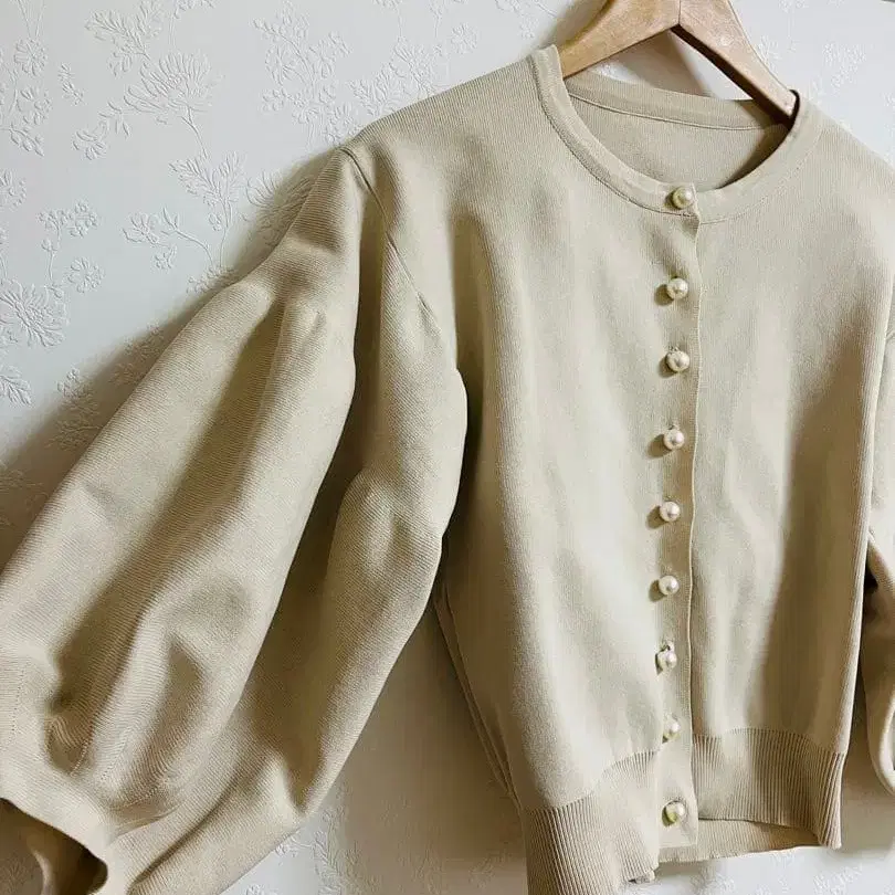 미사용 새상품, 예쁜 진주가 멋진 세련된 가디건, 베이지, 식사 모임에도