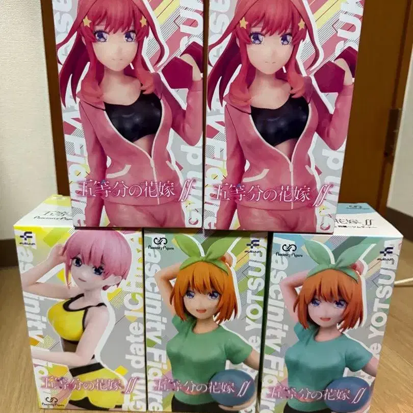 5등분의 신부 캐릭터가 다른 포즈로 디자인된 피규어 세트, 총 5개, 미개봉. - 시리즈명: 5등분의 신부 - 피규어 타입: Pascinity Figure - 캐릭터 수: 5개 - 색상: 멀티 컬러 (핑크, 그린, 오렌지, 옐로우 컬러) - 디자인: 캐릭터의 포즈가 다름 - 패키지 상태: 미개봉 방문해 주셔서 감사합니다. 5등분의 신부 캐릭터가 5명 있는 것이 아니라, 이치카 1개, 요츠바와 미쿠가 2개씩 세트입니다. 미개봉이므로 그대로 포장하여 발송합니다.
