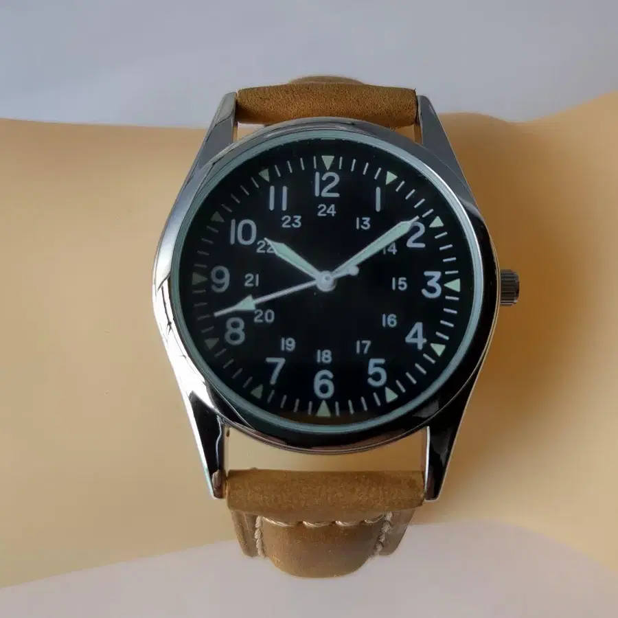 커스텀품 TELVA TE-AM151 베이스 무브먼트 교환 스윕 세컨드 메카 쿼츠 ※ 일반적인 스텝 운침이 아닌, 초침이 1초에 4번 움직입니다. 마치 기계식 같습니다. 밀리터리 워치 아미 군용 가죽 벨트 본체 36.5mm 러그 20mm 봐주셔서 감사합니다. [ 가격 인하 협상 불가 ] 부탁드립니다.