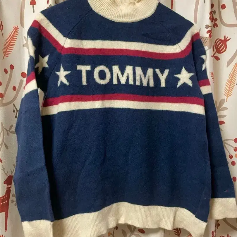 타미힐피거 진스 울 양모 하이넥 로고 니트 스웨터 M TOMMY