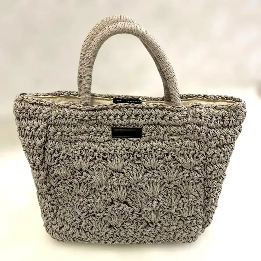 쉘과 같은 무늬의 망사로 코튼과 나일론 혼방 끈으로 짜여져 있습니다. 로고 등 일부는 소가죽이 사용되었습니다. 안쪽은 미색 면 원단으로 되어 있습니다. 이미지에서는 빛의 정도에 따라 브라운 계열로 보일 수 있으나 그레이지 색상입니다. 여름 계절에 어울리는 백이라고 생각하지만 지금 계절에 사용해도 위화감은 없을 것이라고 생각합니다. 몇 회 정도 사용한 미사용에 가까운 상태입니다. 세로 약 23.5cm 상단 가로 약 34cm 바닥 약 14cm