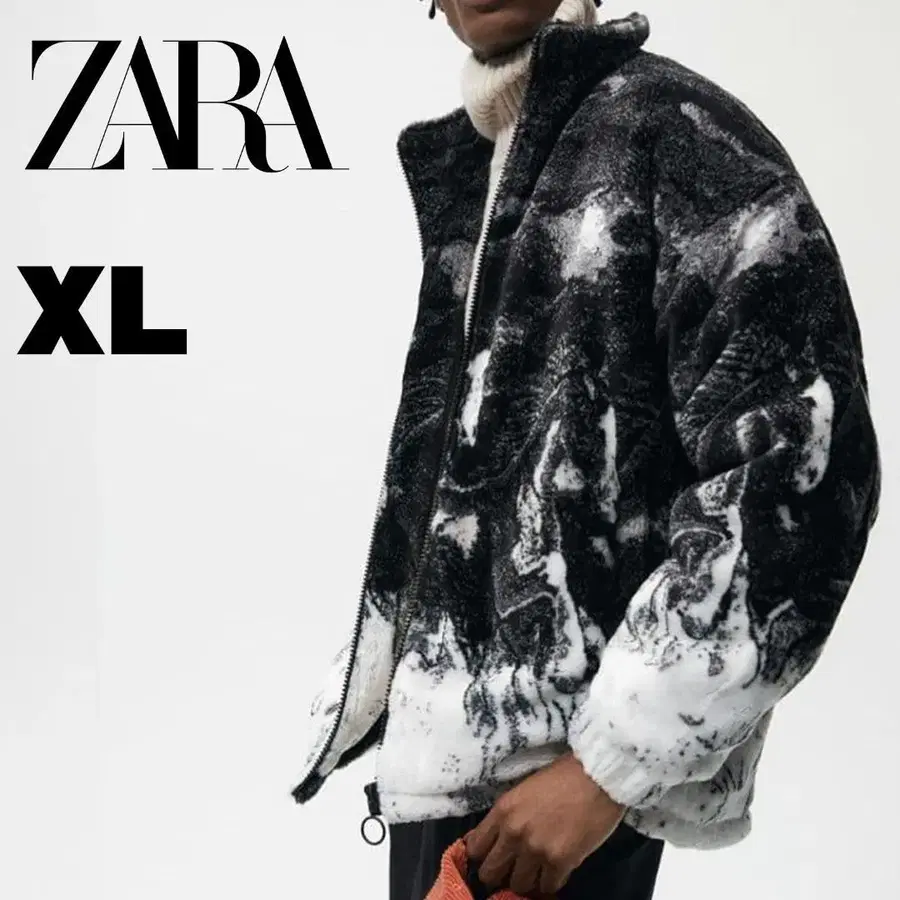 ZARA 보아 플리스 자켓 XL 말 올 패턴 설경 화이트 블랙
