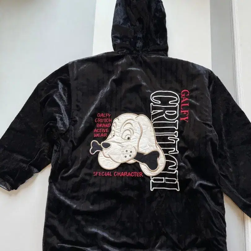 플리스 소재의 블랙 자켓, 강아지 캐릭터 자수가 들어간 후드 부착으로 따뜻합니다. - 브랜드: GALFY CRUTCH - 디자인: 강아지 캐릭터 자수 - 색상: 블랙 - 소재: 플리스 - 스타일: 후드 부착 - 특징: 특별 캐릭터 디자인 방문해 주셔서 감사합니다.