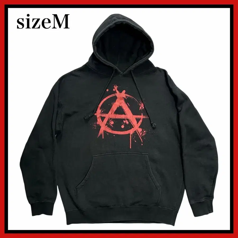 어느 고급 브랜드에도 채용된 빨간색 페인트로 아나키 로고가 디자인된 후드티입니다.
