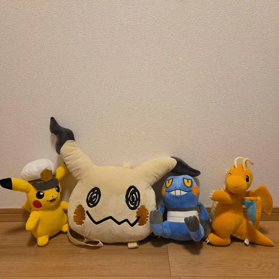 ※ 개별 판매 • 금액 변경 상담은 편하게 댓글 남겨주세요! 미미큐 백팩 높이 약 25cm (귀 포함 약 45cm) 피카츄 높이 약 28cm 망나뇽 높이 약 28cm 삐딱구리 높이 약 20cm