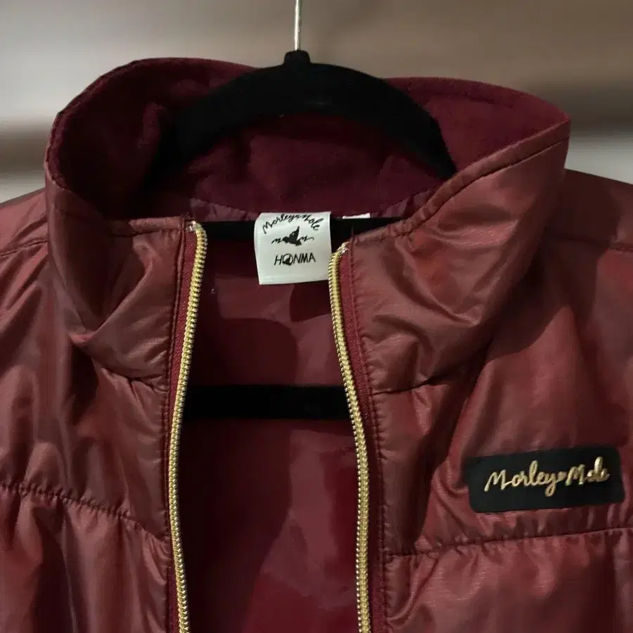 가슴 너비 45. 기장 77 가볍고 매우 따뜻합니다. 탁한 빨간색에 광택이 있고, 골드 컬러 지퍼로 멋스럽습니다. 새상품, 미사용으로 매우 깨끗합니다.