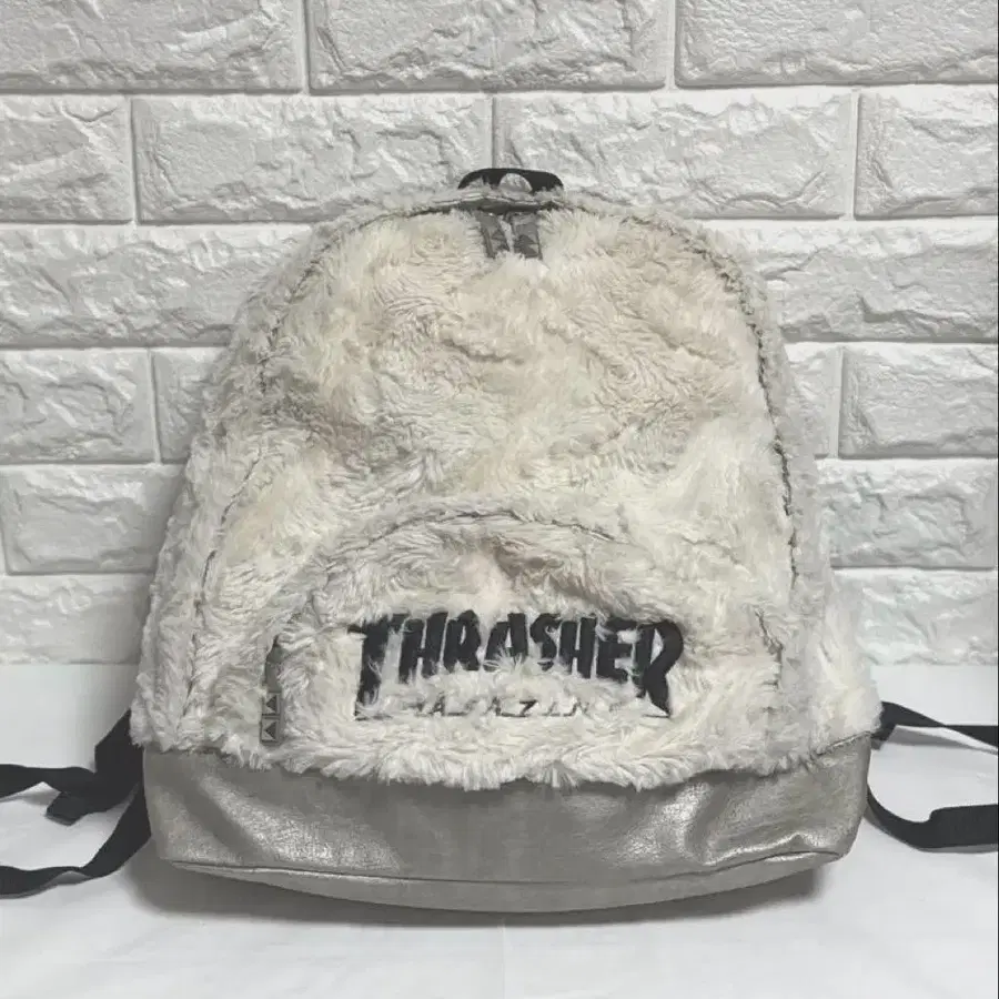 퍼 소재의 THRASHER 백팩, 스터드 장식 디자인으로 개성 있습니다. 눈에 띄는 얼룩도 없고, 퍼의 얼룩도 없습니다. - 브랜드: THRASHER - 색상: 화이트 실버 - 디자인: 퍼 소재 로고 자수 - 장식: 스터드 장식 스트랩 방문해 주셔서 감사합니다. 색상 - 화이트 계열 얼룩, 찢김 등 - 없음