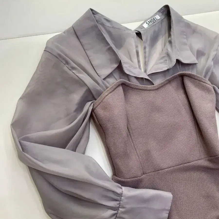 스나이델 블라우스 도킹 니트 원피스 화이트