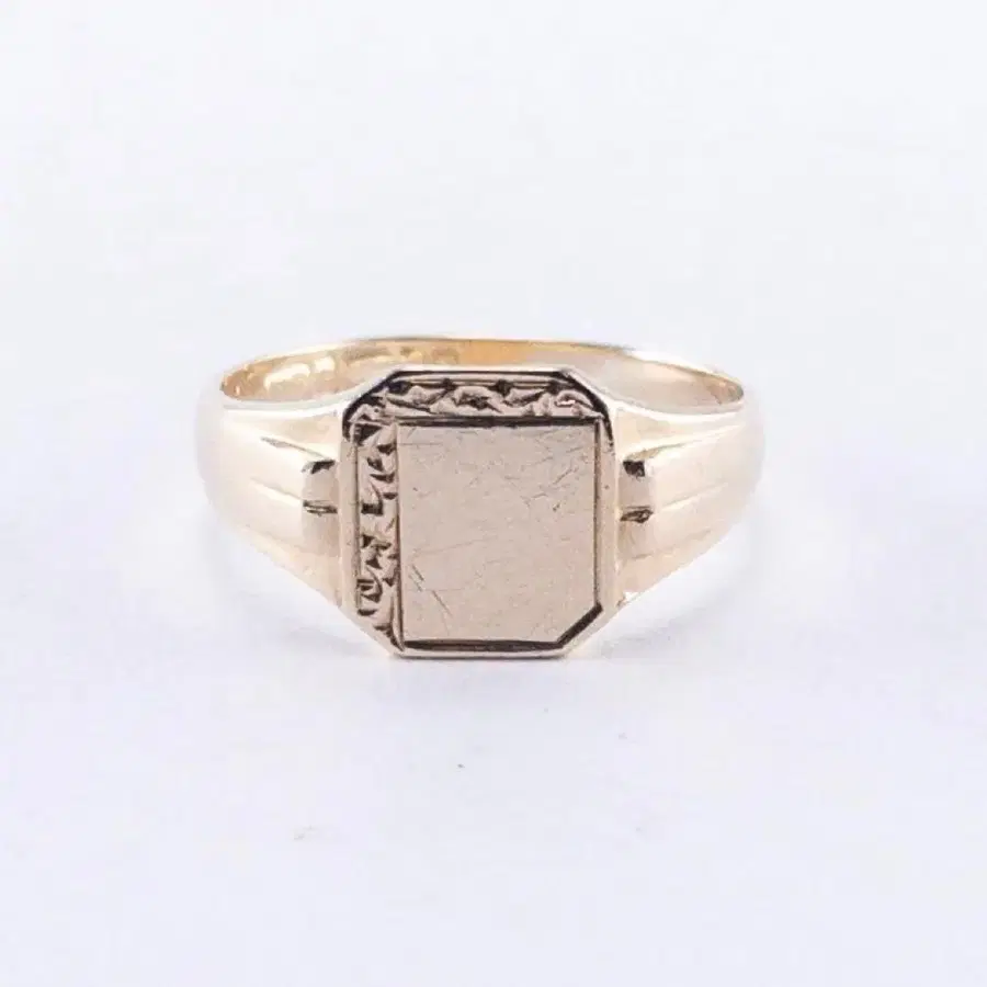9 375라는 숫자 각인은 1975년 이전의 9금(9K)을 나타내는 오래된 포맷이며, 데이트 레터 틀의 모양이 1942년, 1967년과도 일치하지 않는 것으로 보아 1917년의 홀마크임을 알 수 있습니다. 100년 이상 전의 에드워드 시대 후기부터 제1차 세계 대전기의 영국 주얼리답게 절제되고 세련된 페이스 디자인이 특징입니다. 9 x 8.5mm의 작은 페이스에 섬세한 엣지 장식이 더해져 당시 조각 장인의 미감이 느껴집니다. 단정한 실루엣은 현대에도 보편적인 아름다움을 지닌 클래식 디자인입니다.
