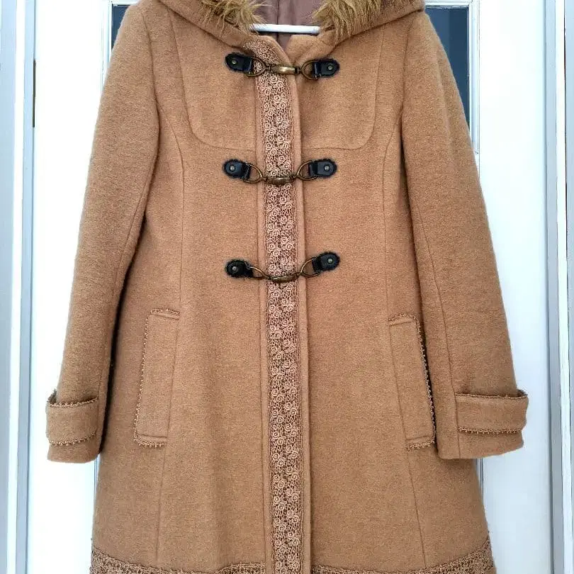 엑시즈팜의 퍼가 달린 후드와 레이스 트리밍이 특징인 베이지색 더플 코트. - 색상: 베이지 - 후드: 퍼 트리밍 후드 - 디자인: 더플 코트 스타일 - 장식: 레이스 트리밍 - 포켓: 사이드 포켓 포함 중고품입니다. 이해해 주시는 분께서 부탁드립니다. 주름, 보관 시 향기 등이 있을 수 있음을 양해 부탁드립니다. 방문해 주셔서 감사합니다.