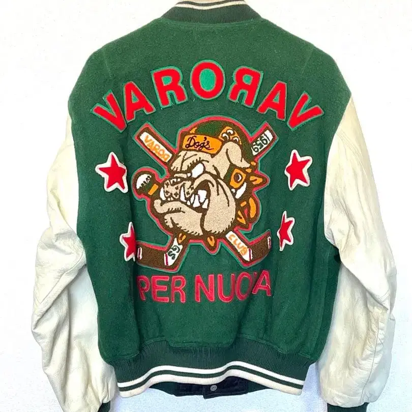 빈티지 빈티지 상품 바시티 자켓 그린/화이트 자수 디자인 59