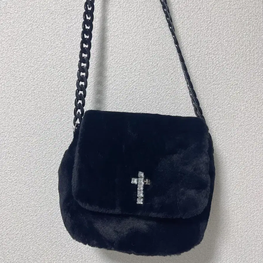 이토미 인조 모피 숄더백 블랙 십자가 EAT ME