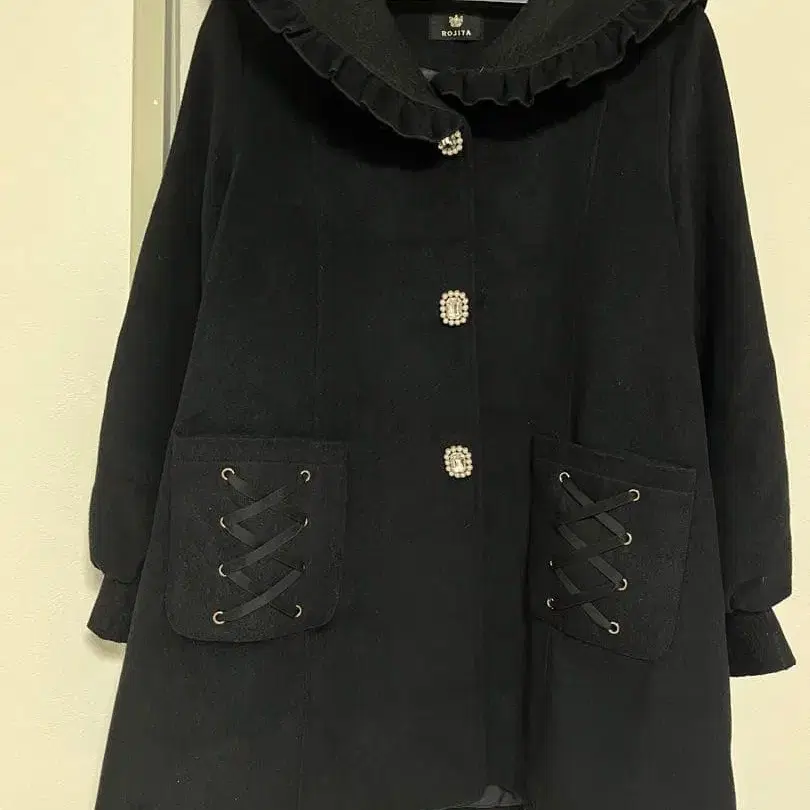 • ROJITA 로지타 백리본 후디 코트 블랙 검정 정품
