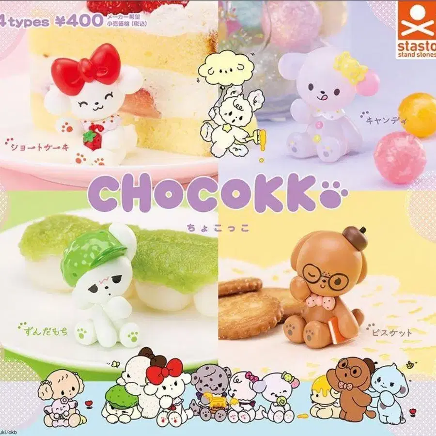 CHOCOKKO 쵸코코 전 4종 컴프 스탠드 스톤즈 [ 상품 내용 ] 숏 케이크 즈다 모찌 비스킷 캔디 ⚠ 미니북이 부속됩니다. ⚠ 캡슐, 대지 POP는 부속되지 않습니다. 카테고리 - 가챠가챠