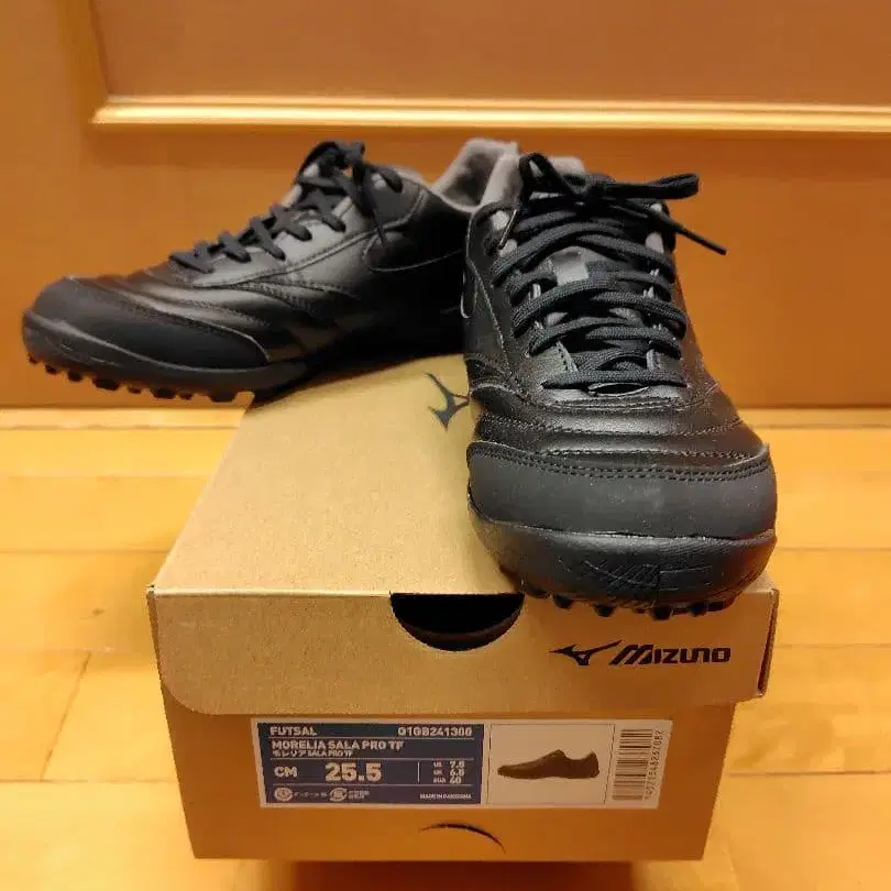미즈노 모렐리아 살라 프로 tf q1gb241300 블랙 풋살화 사이즈 25.5cm 미즈노 공식 사이트에서 구매했지만 발에 맞지 않아 아쉽게 판매합니다. 택 없음 시착만 한 제품입니다.