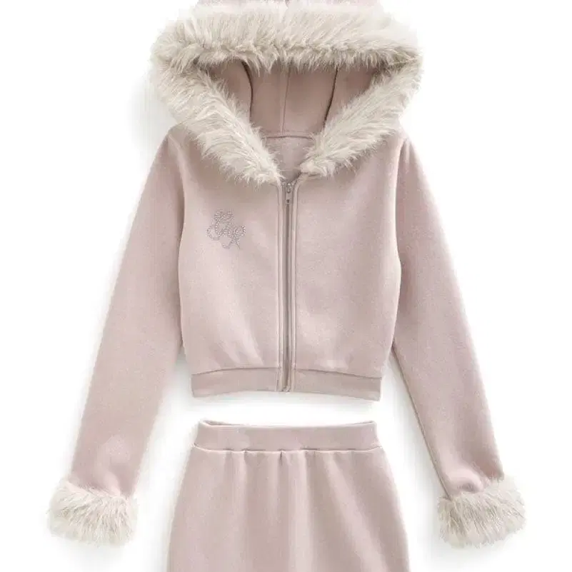 GRL 퍼 후드티 x 미니 스커트 맨투맨 셋업
