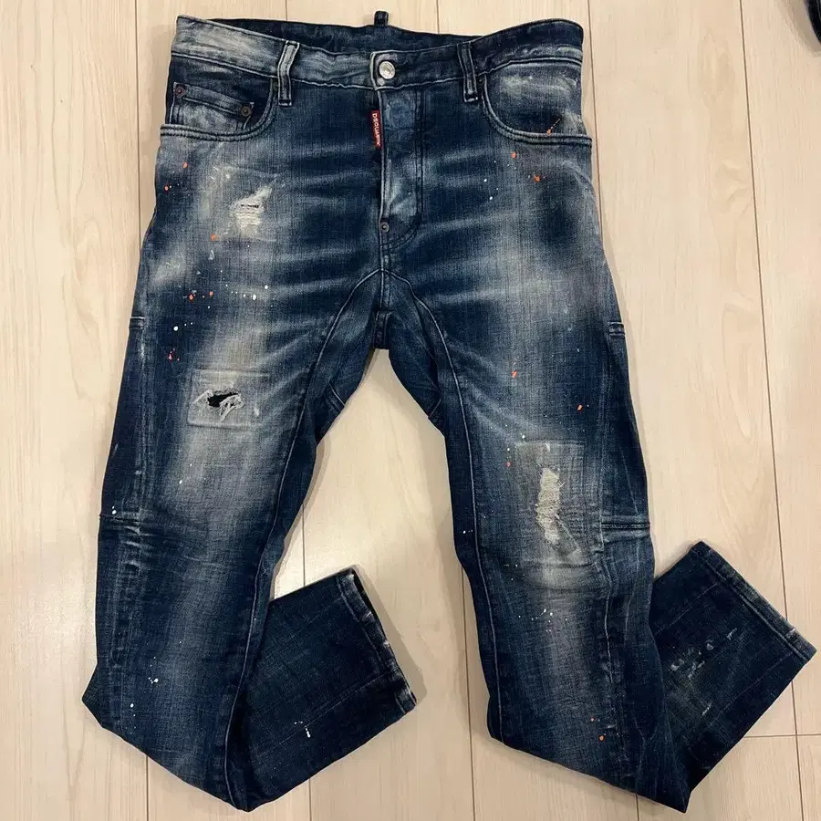 새상품 구매 디스퀘어드2 타이디 바이커 사이즈 44 오렌지 화이트 페인트 얼룩 등 없이 짧게 2회 착용했습니다. 허리 약 80 밑위 약 25 인심 약 73 허벅지 약 25 밑단 폭 약 15