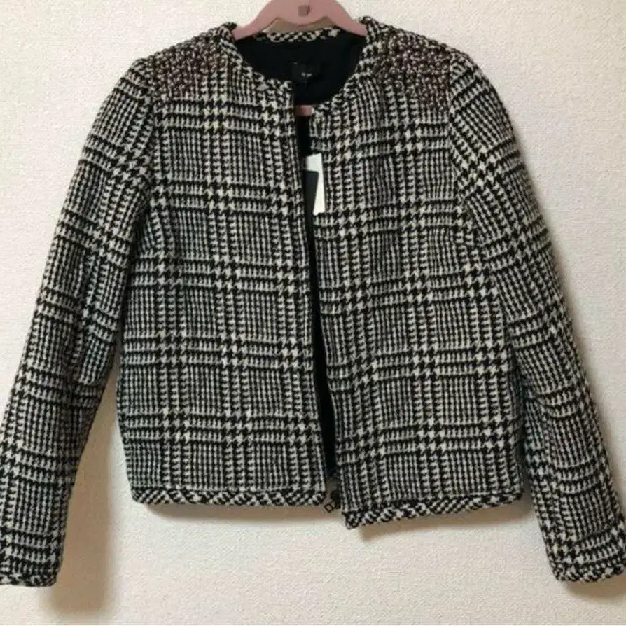 NINE 나인 자켓 코트 숏코트 블루종 하운드투스 하운드투스 체크 정가 43,050엔 단시간 사용만 겉감 모70 폴리에스테르15 아크릴10 나일론5 안감 폴리에스테르100 솜 폴리에스테르100 택 없음 블랙 화이트 트위드 트위드 체크