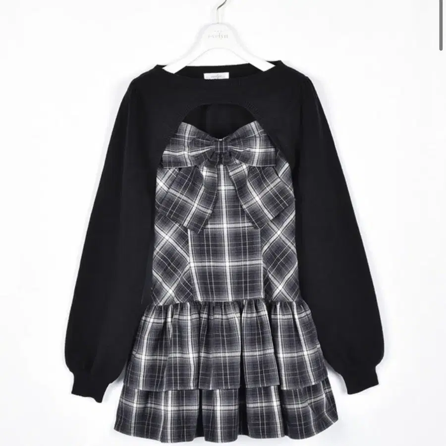 • 다리치 Darich 체크 리본 니트 미니 원피스
