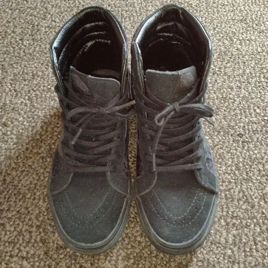 ◎ VANS, 하이컷 스니커즈, 24cm. 신발 밑창부터 신발끈까지 모두 블랙 색상입니다! 벨벳 같은 가을/겨울용 원단이 사용되었습니다. ◎ 3~4회 정도 짧게 착용한 것이 전부라 신발 밑창 마모는 거의 없습니다. 안쪽 로고도 깨끗하게 남아 있습니다. 중고 제품으로 양호한 컨디션이라고 생각합니다. ◎ 사이즈: 24cm 컬러: 블랙/블랙 계열 ★ 개인 검품이므로 놓친 부분이 있을 수 있습니다. 느끼는 방식에는 개인차가 있으므로, 조금이라도 신경 쓰이시는 분은 구매를 삼가해 주시기 바랍니다. ★ 댓글은 프로필을 확인하신 후에 부탁드립니다.